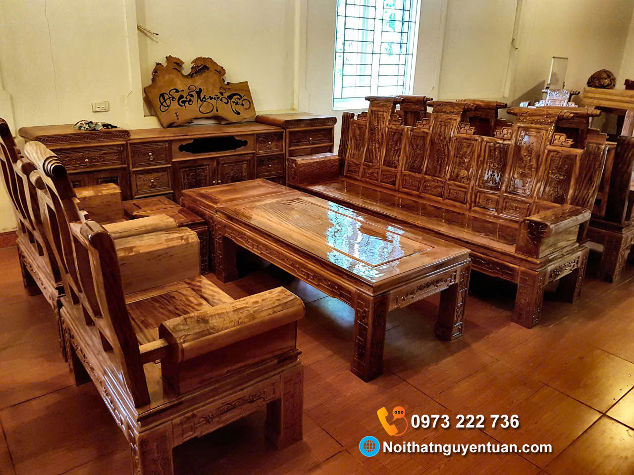 🪵 Bộ Triện Voi 7 Món – Gỗ Lát Chun là sản phẩm cao cấp được Nội Thất Nguyễn Tuấn trực tiếp thiết kế, gia công và sản xuất tỉ mỉ đến từng chi tiết. + Lấy cảm hứng từ hình tượng voi phong thủy, bộ bàn ghế mang ý nghĩa may mắn, quyền lực và thịnh vượng cho gia chủ. + Chế tác từ gỗ Lát chun tự nhiên, sản phẩm có vân gỗ xoáy đẹp, màu sắc trầm ấm và độ bền vượt trội theo thời gian. ✅ Bộ Triện Voi 7 Món – Gỗ Lát Chun là lựa chọn lý tưởng cho phòng khách sang trọng, thể hiện đẳng cấp và gu thẩm mỹ tinh tế của người sở hữu. 📞 Hotline tư vấn: 0973 222 736 👉 Nội Thất Nguyễn Tuấn – Giá tại xưởng, chuẩn tinh tế – bền cùng năm tháng.Bộ Hoàng Gia 7 Món – Gỗ Lát Chun